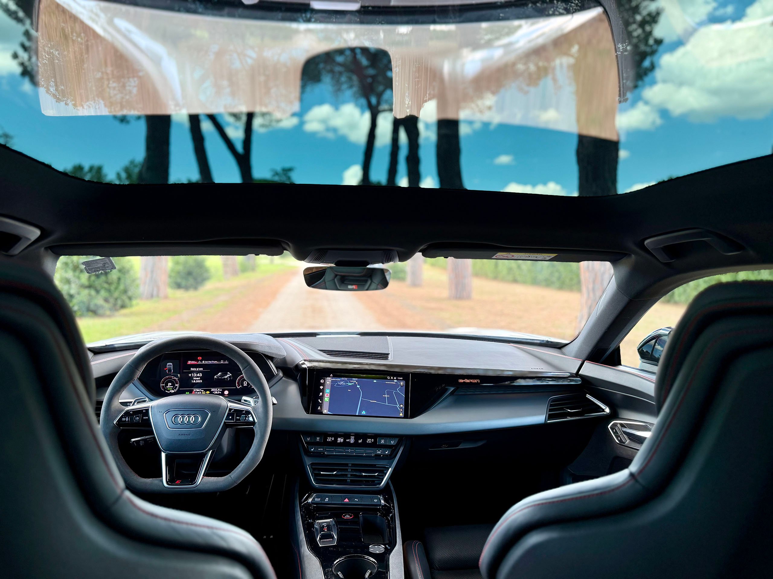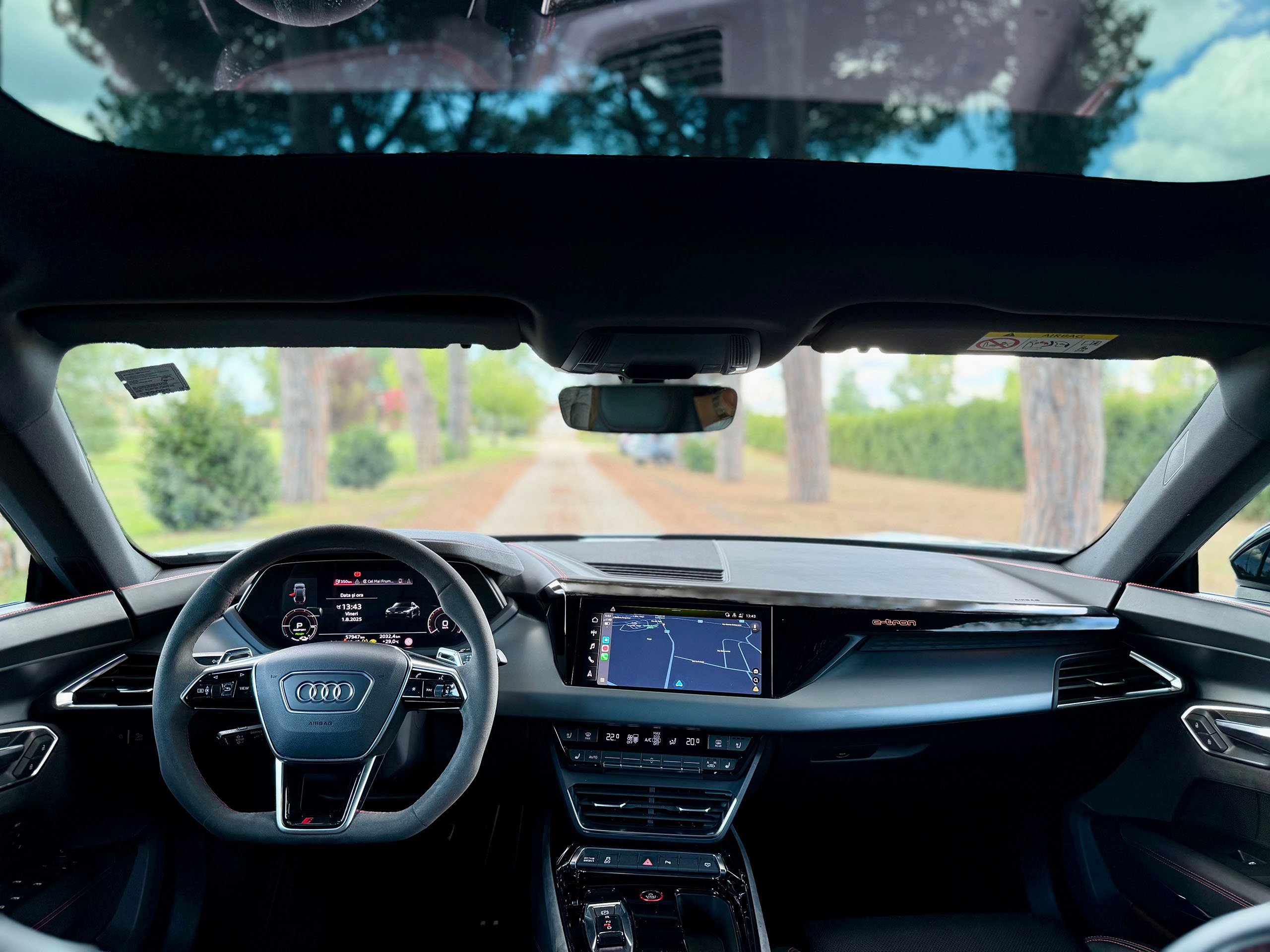 • steering wheel with flat bottom, steering wheel paddles, controls.