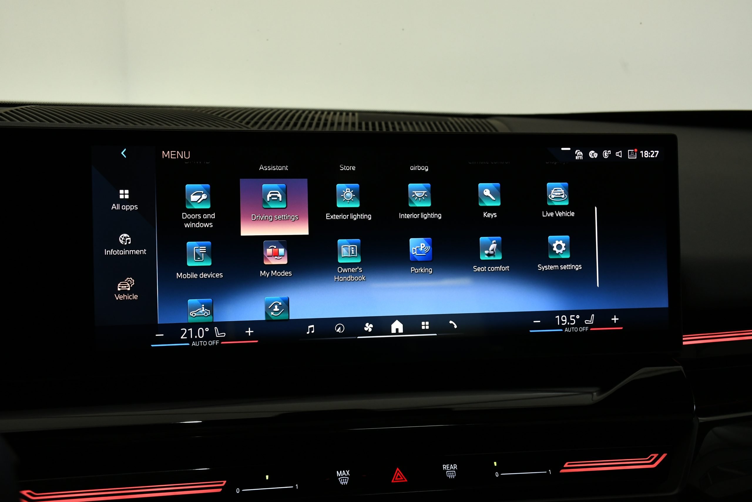 • Electrically adjustable seats, with massage and ventilated, heating, and electric lumbar support.