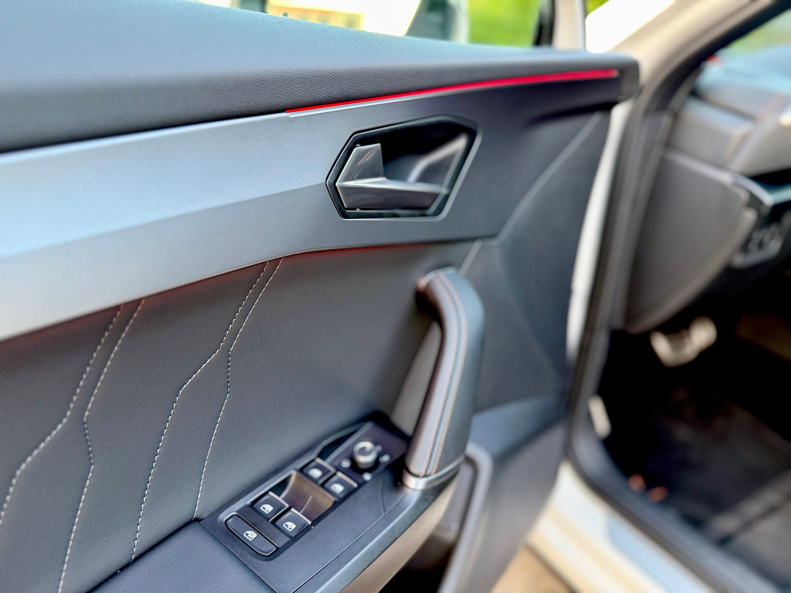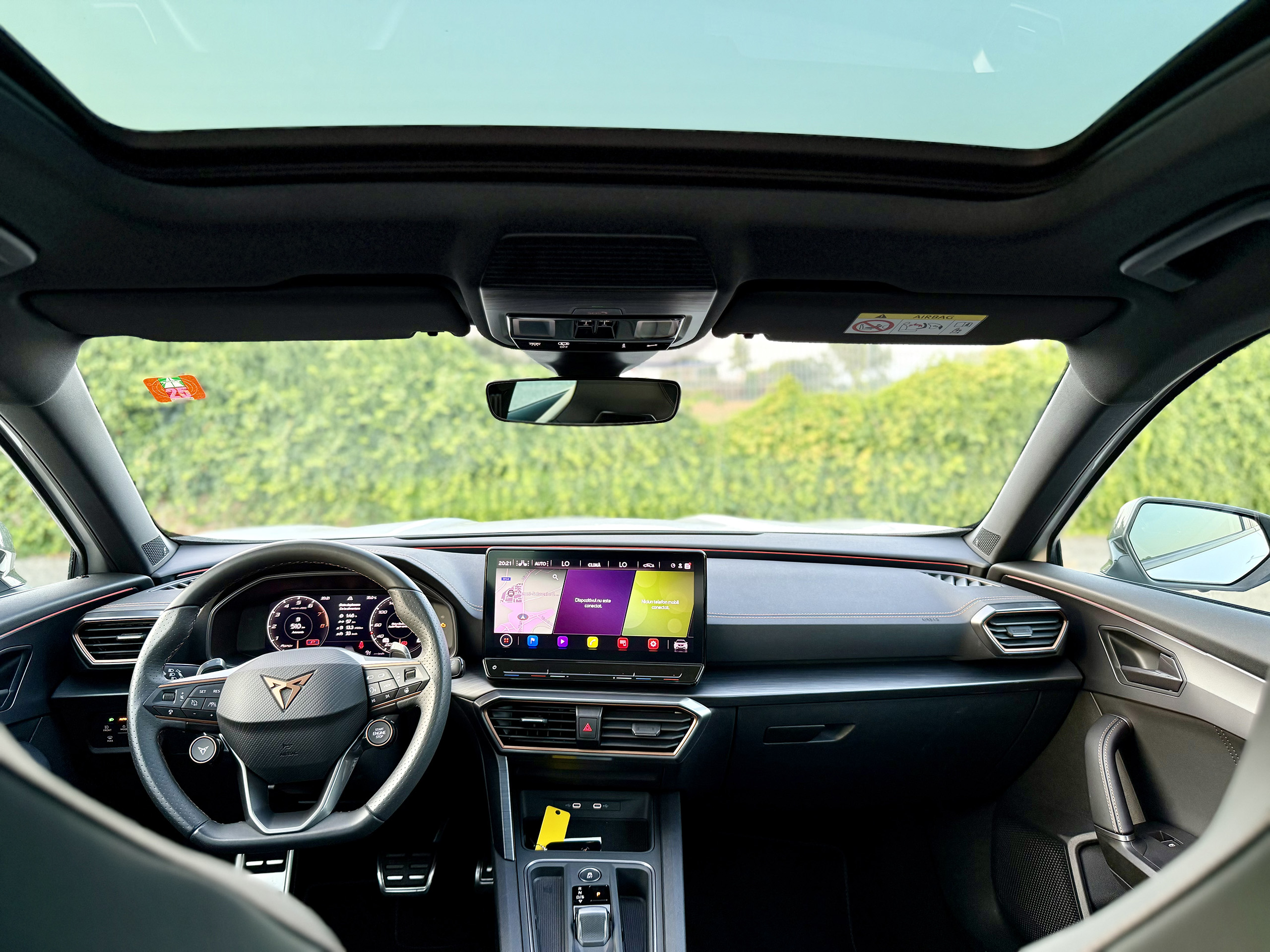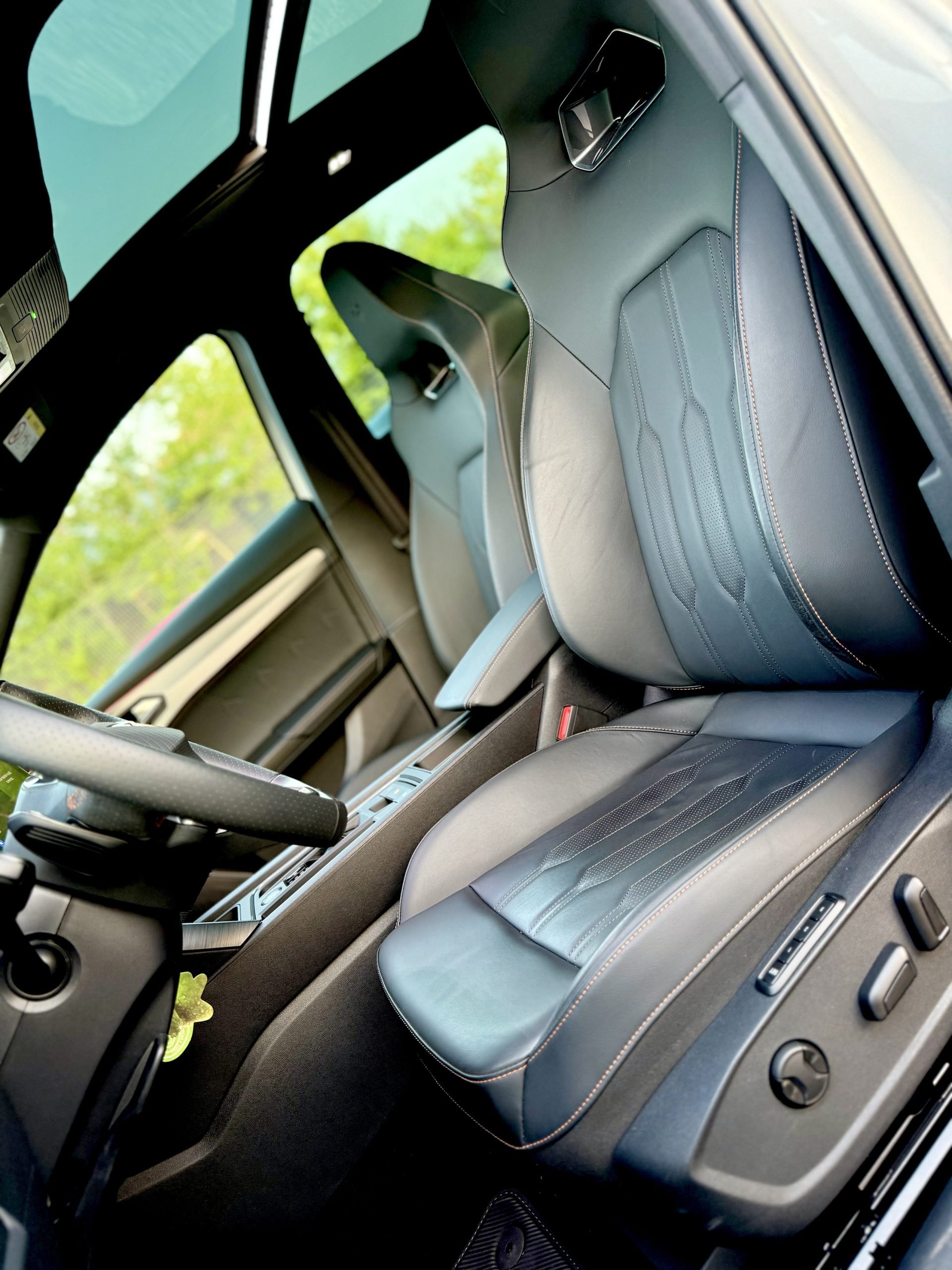 Full leather upholstery in impeccable condition with orange stitching, specific to the CUPRA model