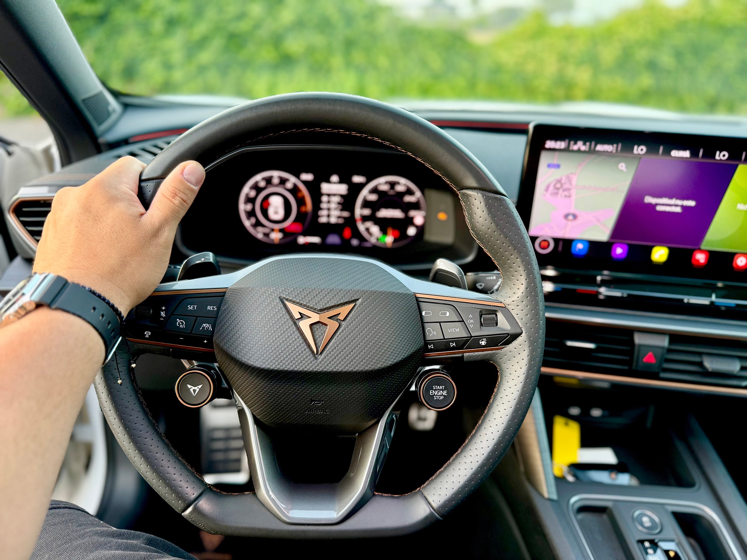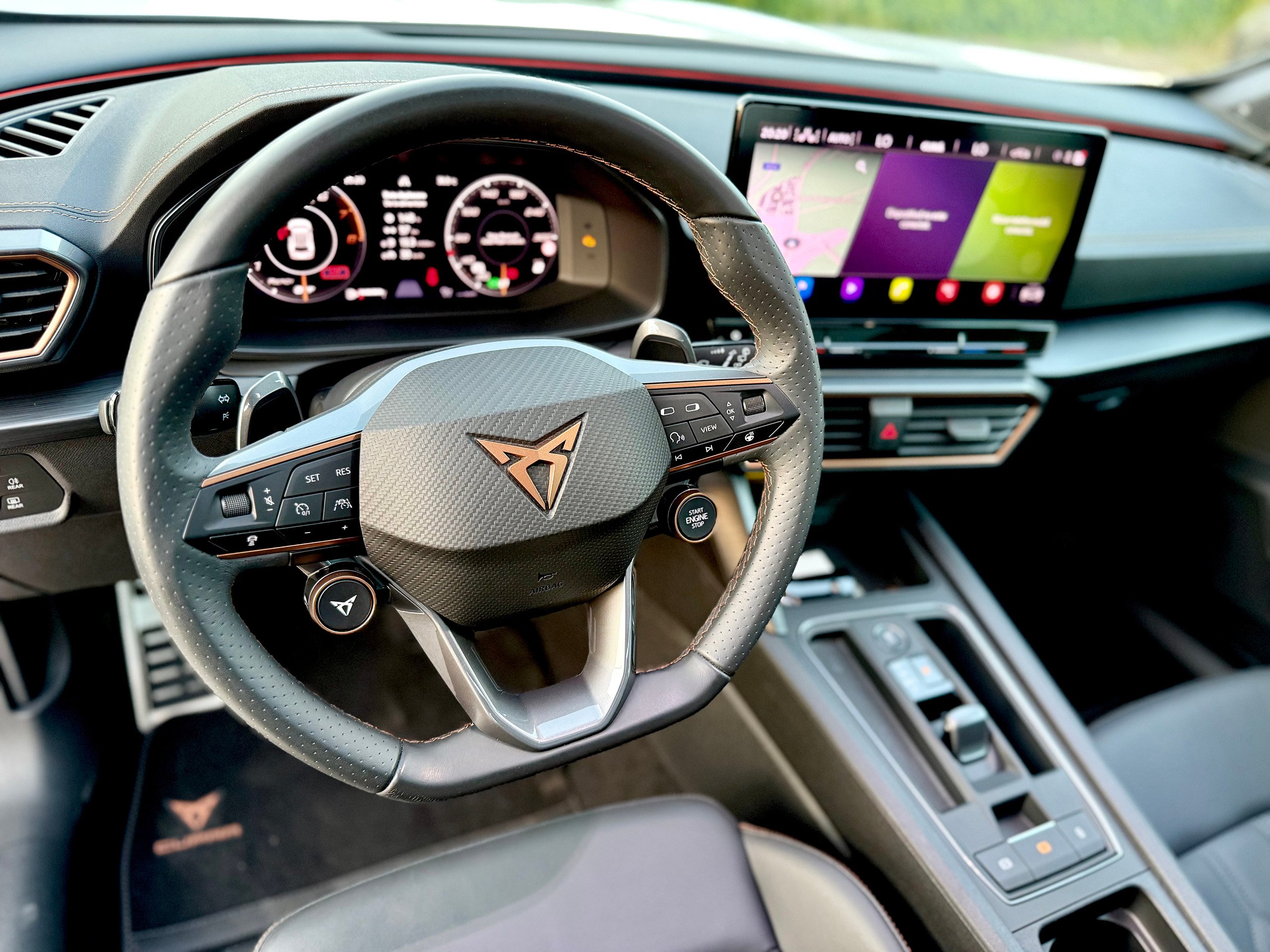 CUPRA VZ steering wheel with sport buttons for engine start and driving modes